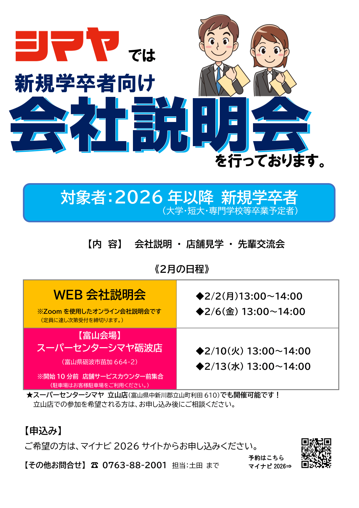 2026卒対象【シマヤで一緒に働こう!】 会社説明会開催中!
